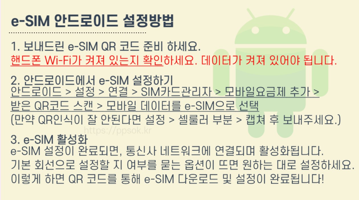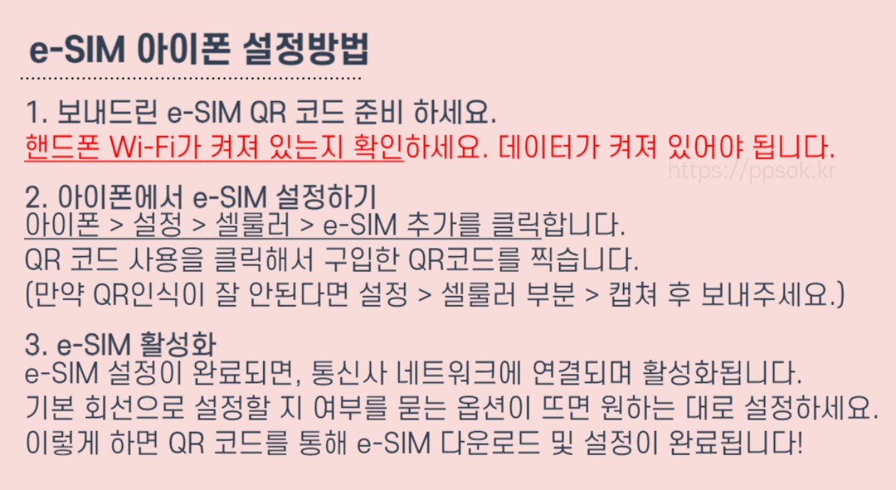 – e-SIM QR코드 다운로드는 구매 후 30일 이내에 해야 합니다.