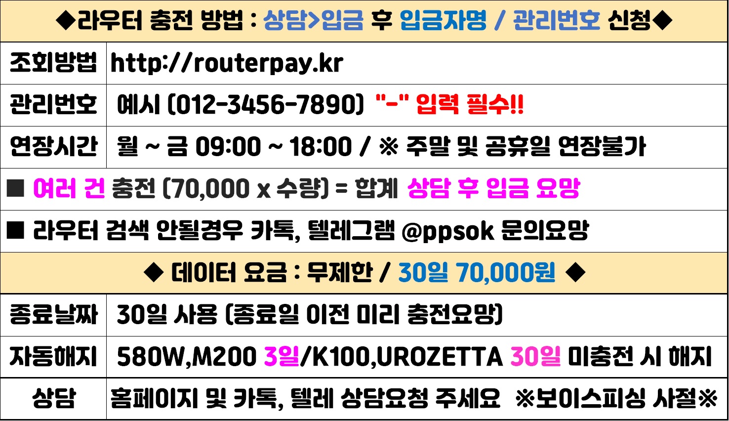 라우터조회 “-” 입력필수 라우터조회조회방법사용상태안내■ 해지상태시 유심재발행 필요 관리자 연락주세요.■ 정지상태시 연장가능 빠른 충전요망관리번호통신사모델명라우터번호유심번호바코드번호대리점연장상태수정검색관리번호요금제통신모델명라우터번호유심번호종료일상태관리번호를 검색해 주세요 라우터연장 신청접수 연장신청연장안내■ 조회안됨,해지기기 상태시 관리자 연락주세요. ■ 여러건 연장시에는 관리자 연락주세요. 연장신청 신청일관리번호입금자명연장기간신청현황 2025-12-12012-29**-6***이*희 75,000원 / 30일연장완료2025-12-12013-52**-3***신*인 75,000원 / 30일연장완료2025-12-09012-22**-5***정*영 75,000원 / 30일연장완료2025-12-09012-29**-0***문*인 75,000원 / 30일연장완료2025-12-08015-44**-8***박*민 75,000원 / 30일연장완료 연장신청 12345678910Powered by MangBoard | 망보드 스토어